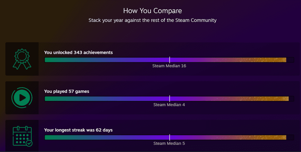 Steam 2024 Year In Review. There is a 2 week hole in the year in reviews. You can get your year in review from the steam website.